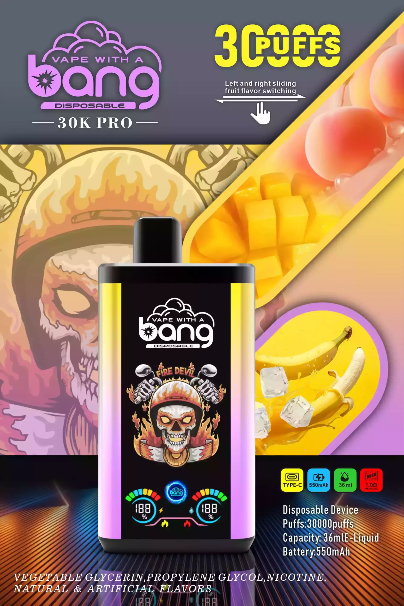 Die Bang 30000 Puffs Einweg-E-Zigarette ist die perfekte Wahl für Dampfer, die auf der Suche nach einer leistungsstarken, langlebigen und geschmacklich abwechslungsreichen E-Zigarette sind. Mit einer langen Lebensdauer von 30.000 Zügen, einer großzügigen 36 ml E-Liquid Kapazität und einer Vielzahl köstlicher Aromen ist dieses Produkt der ideale Begleiter für den täglichen Gebrauch. Besuchen Sie vapestars.de, um die Bang 30000 Puffs zu entdecken und sich das ultimative Dampferlebnis zu sichern!