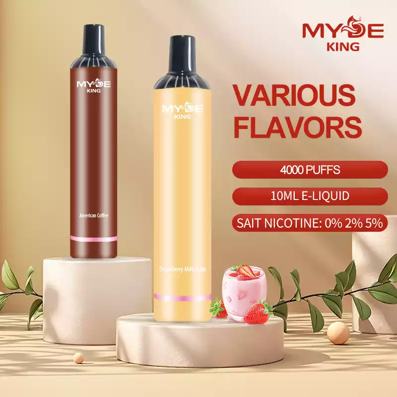 Die MYDE King 4000 Puffs Einweg-E-Zigarette bietet 4000 Züge, 10 ml E-Liquid und  Mit Mesh-Coil, 500mAh Akku und 17 köstlichen Aromen für ein langanhaltendes, intensives Dampferlebnis.