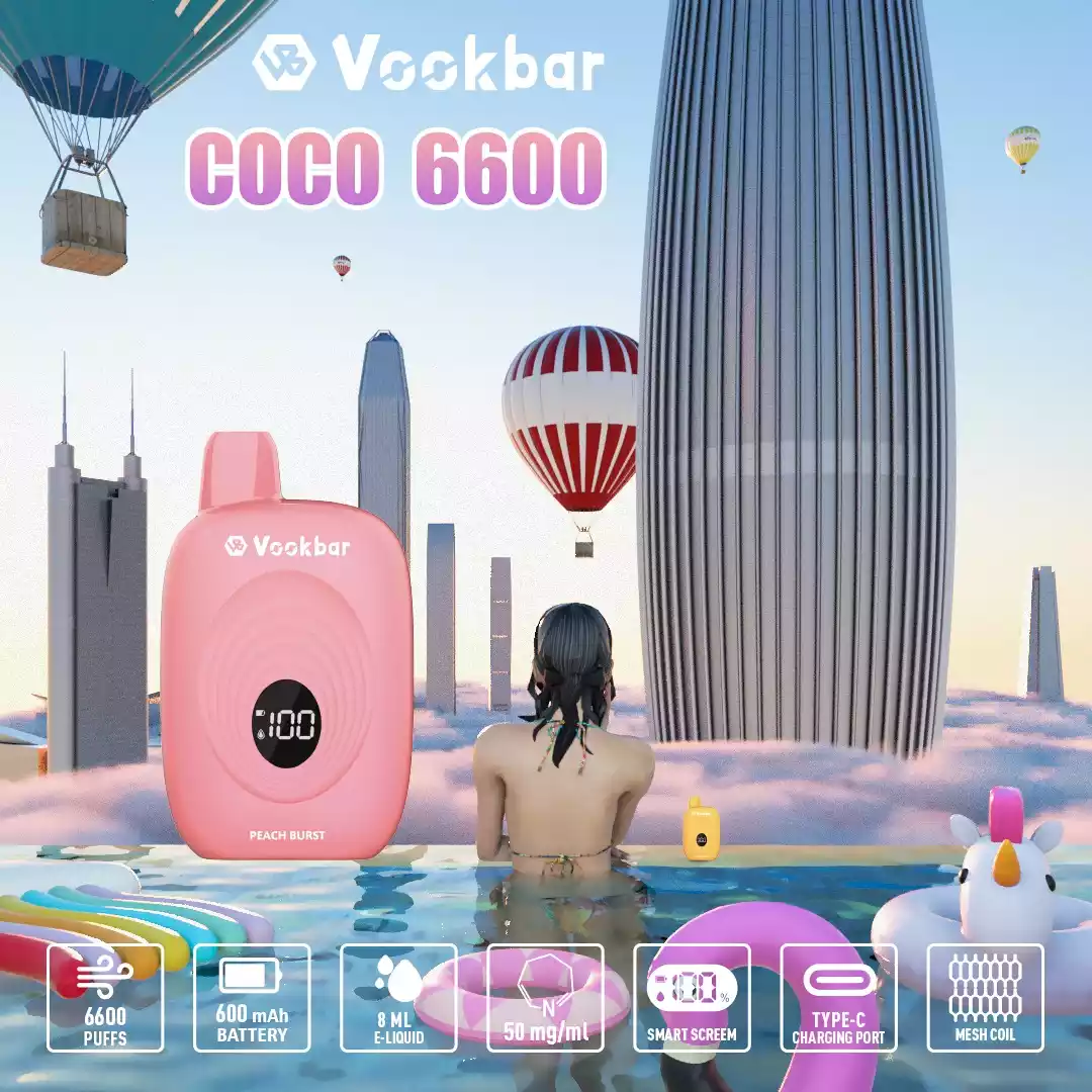 Die VASY Vookbar COCO 6600 Puffs ist eine moderne Einweg-E-Zigarette, die mit kompaktem Design, ausgewogener Nikotinstärke und solider Technologie überzeugt. Dank 12 ml E-Liquid, bis zu 6600 Zügen und einer hochwertigen 1.0 Ohm Coil bietet sie ein intensives Dampferlebnis – perfekt für unterwegs oder den täglichen Gebrauch.
